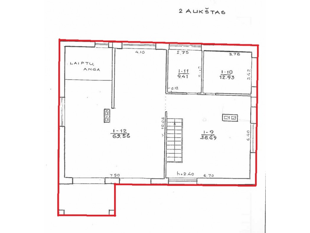 - II aukštas (4 kambariai): 69.56 m2, 9.41 m2, 12.93 m2, 38.69 m2.