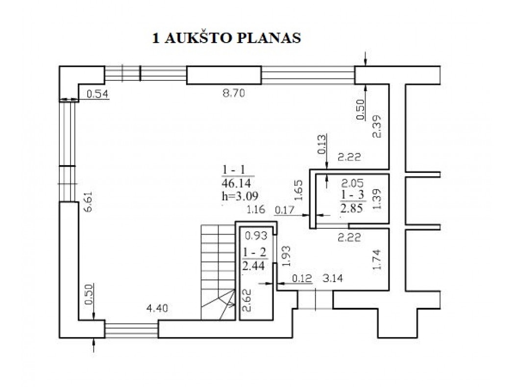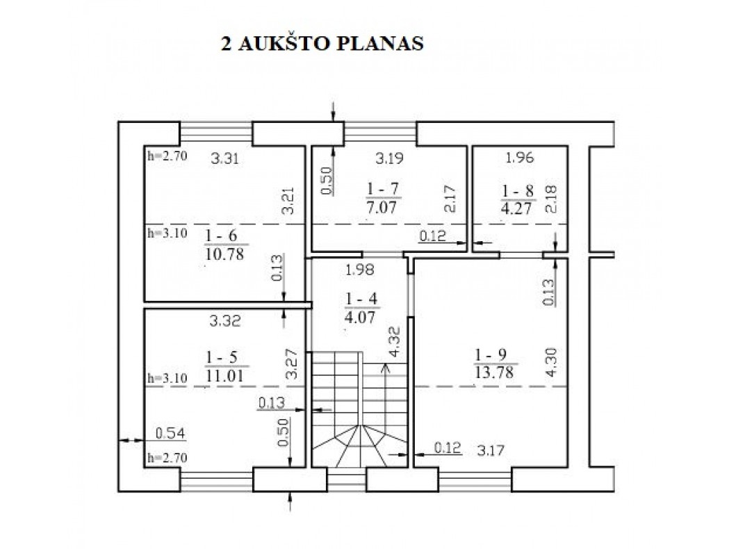 - Vonios kambarys pirmame aukšte 2 kv.m ir antrame (paruošti įvadai dušui ir voniai) - 7 kv. m