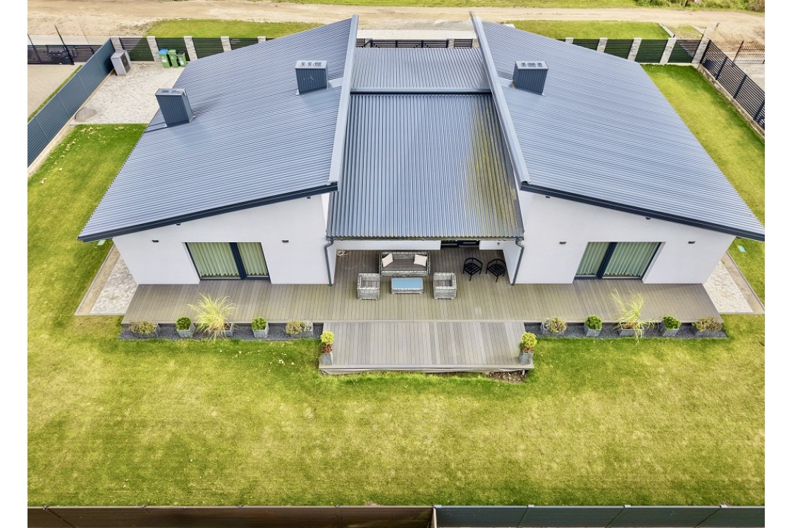 - Įrengta 90 m² terasa, į kurią patekti galima iš svetainės, darbo kambario ir pagrindinio miegamojo.